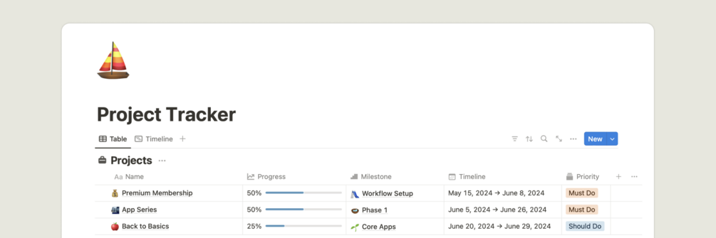 Looking for a minimal project tracker template that gives you a bird's eye view of your ongoing projects and their progress?